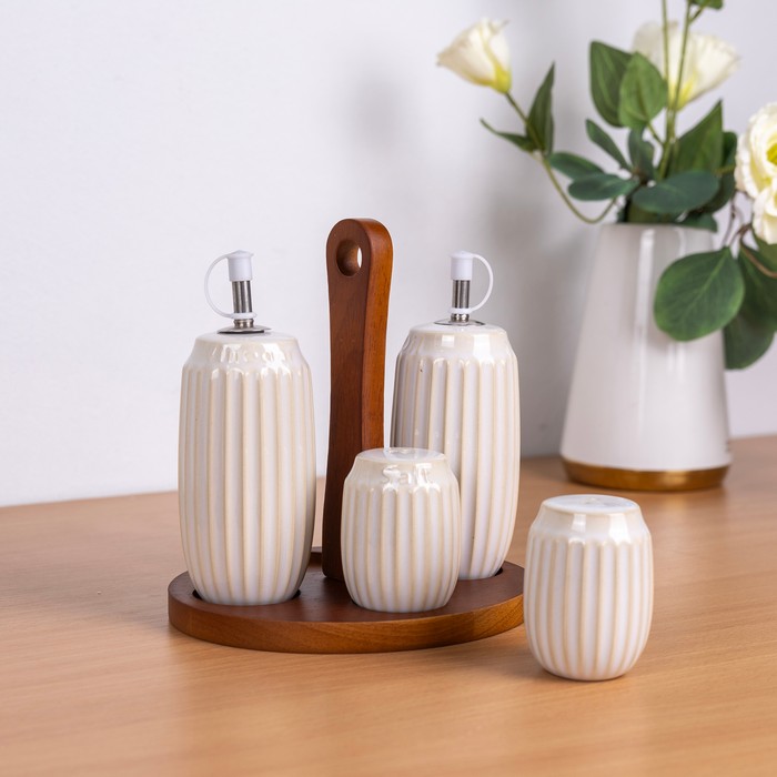 Набор емкости для специй, GS, 4 штук, Керамика/Бамбук, Кремовый
