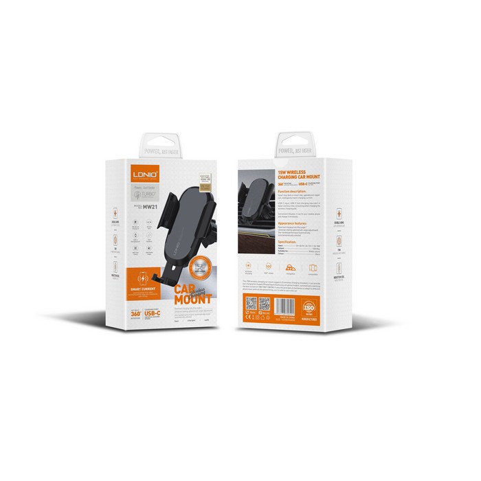 Автомобильный держатель телефона, LDNIO, 5в/3A 9в/2A 12в/1.5A, АБС, 15вт беспроводной, Черный