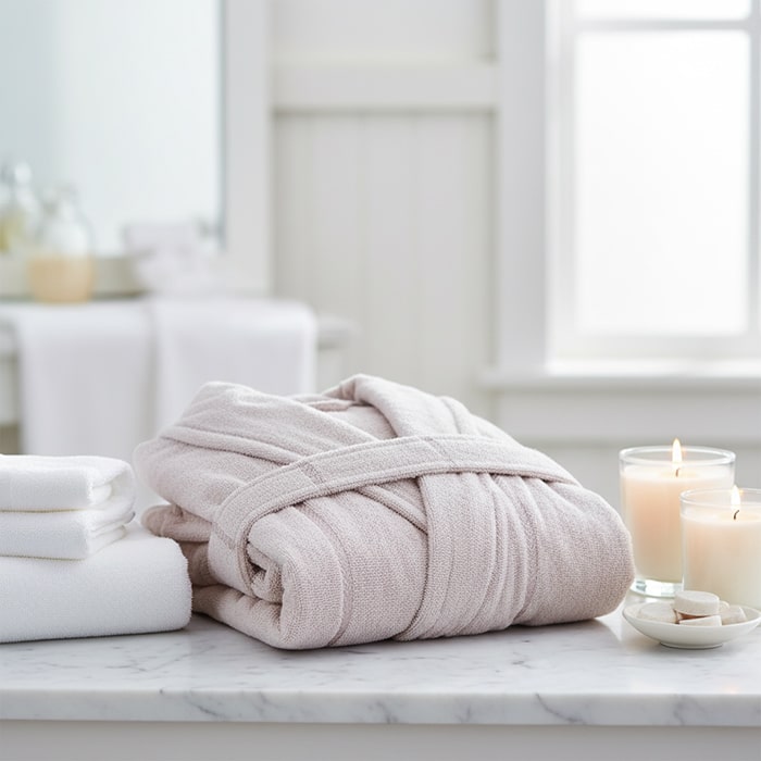 Банный халат, MK HAVLU, M, Хлопок, Пудра, Съемный пояс, Турция