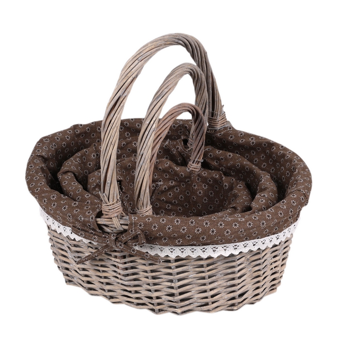 Набор корзин, GS, 3 предмета, Лоза, Текстиль, 40x34cm, 34x28cm, 26x22cm