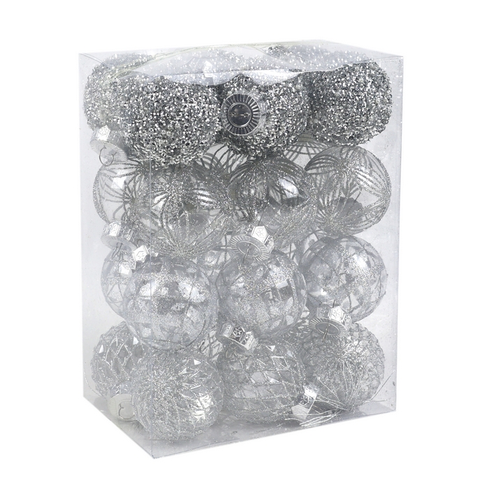Набор рождественских шаров, GLOBAL CHRISTMAS, 24 шт, 6см, Cеребристый, ПВХ