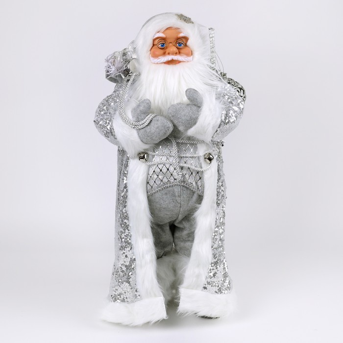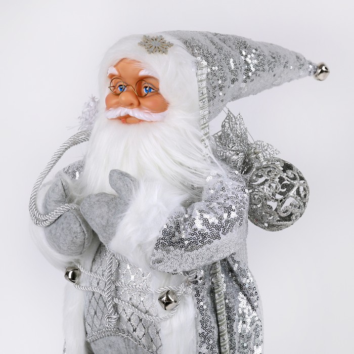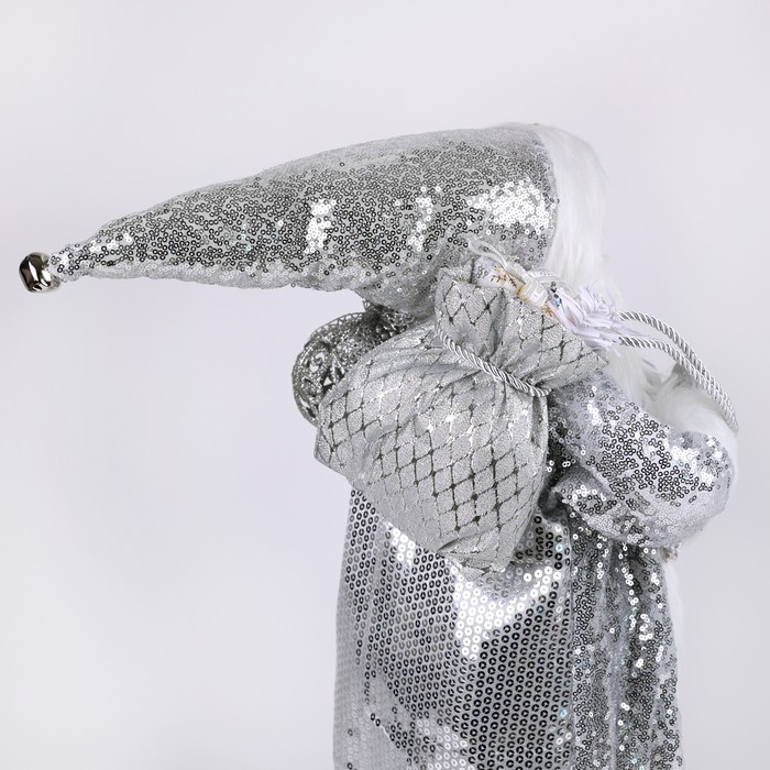 Дед мороз, GLOBAL CHRISTMAS, 1.50см, Белый/Серебряный, Текстиль/ Пластик