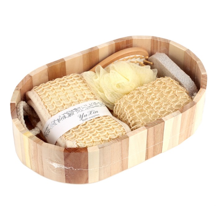 Набор для ухода за телом, GS, 5 штук, Белый/Бежевый, Деревянный ящик