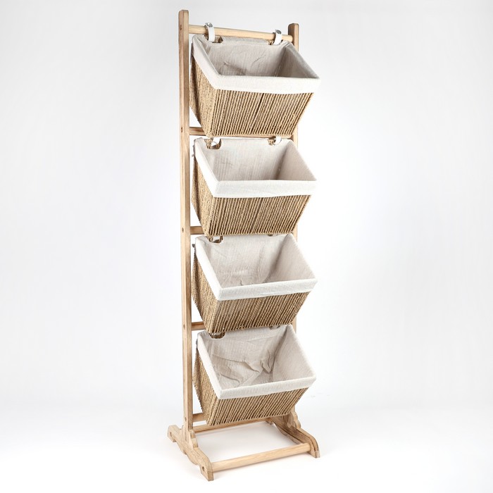 Полка для хранения, GS, Дерево, 4 отсеков, Джут, 35x35x125 см, Коричневый