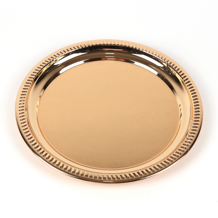 Поднос, GS, Нержавеющая сталь 201, 40см, Золотистый, C рисунком, Круглый