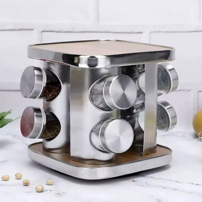 Набор емкости для специй, GS, 8 предметов, Нержавеющая сталь/Дерево