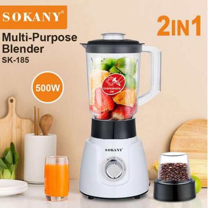 Блендер, SOKANY, Нержавеющая Сталь/Пластик, 500 Вт, 2 in 1, 1.6Л, 2 передачи, Белый