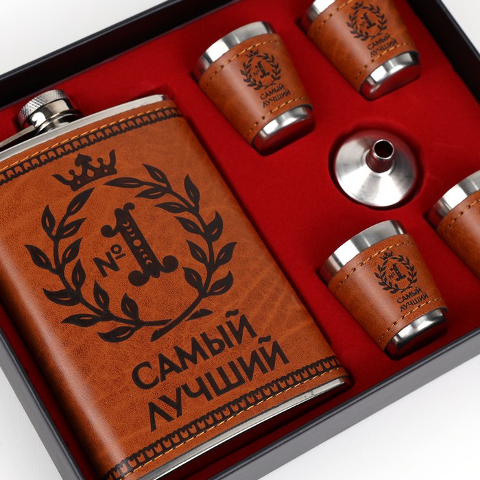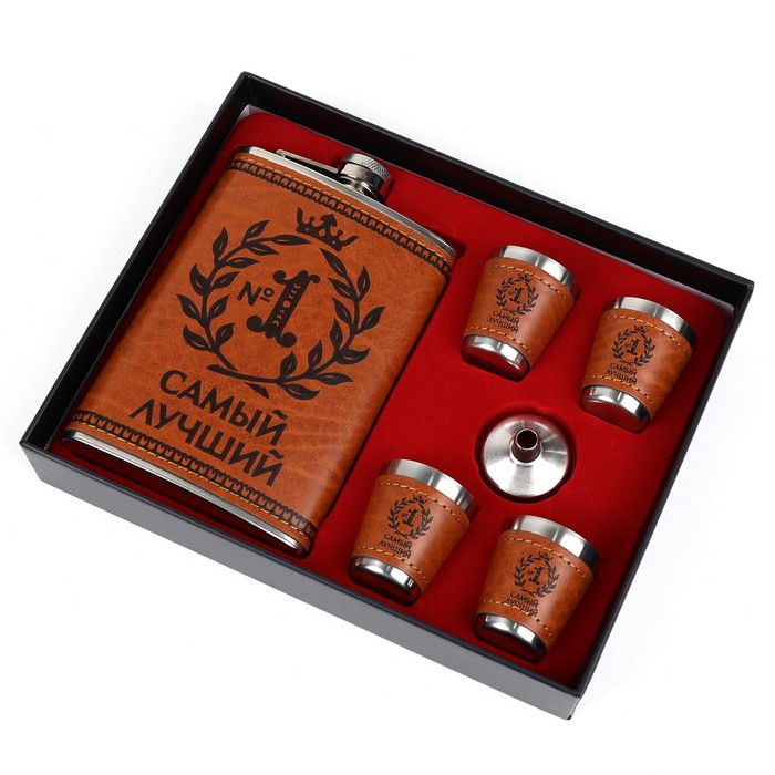 Подарочный набор фляжка с рюмками, GS, 6 предметов, Нержавеющая Сталь, 270мл, Коричневый, Для Мужчин