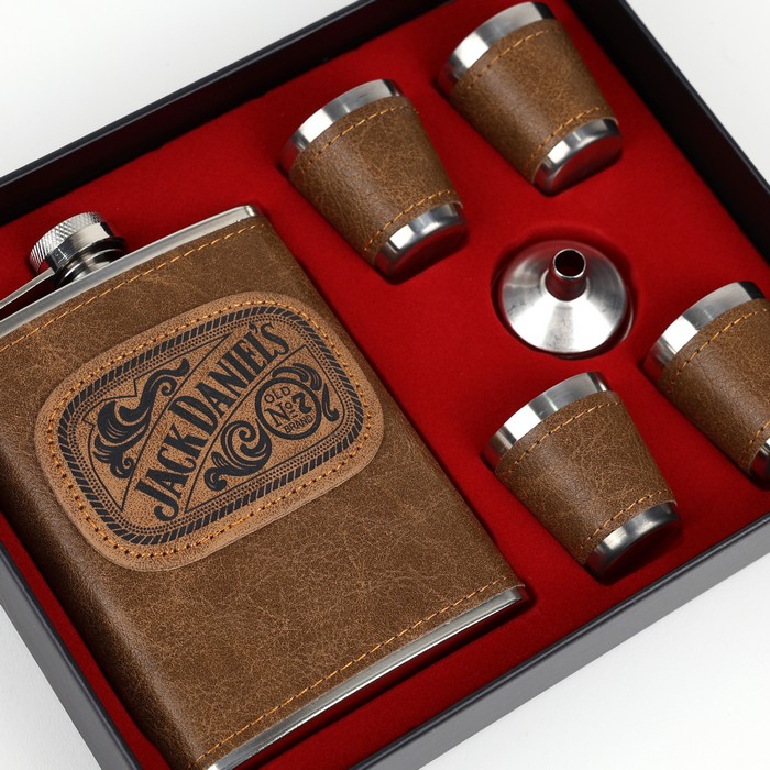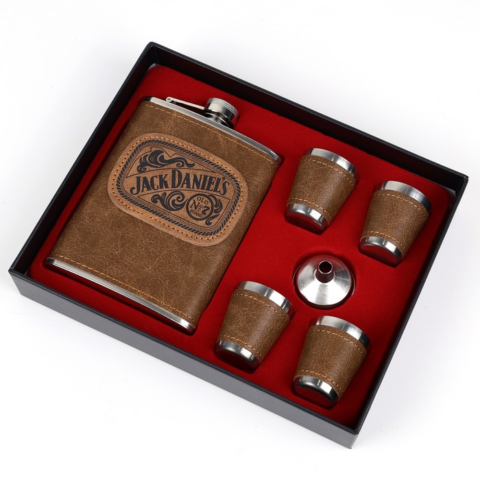 Подарочный набор фляжка с рюмками, GS, Нержавеющая Сталь, 240мл, Коричневый, Для Мужчин