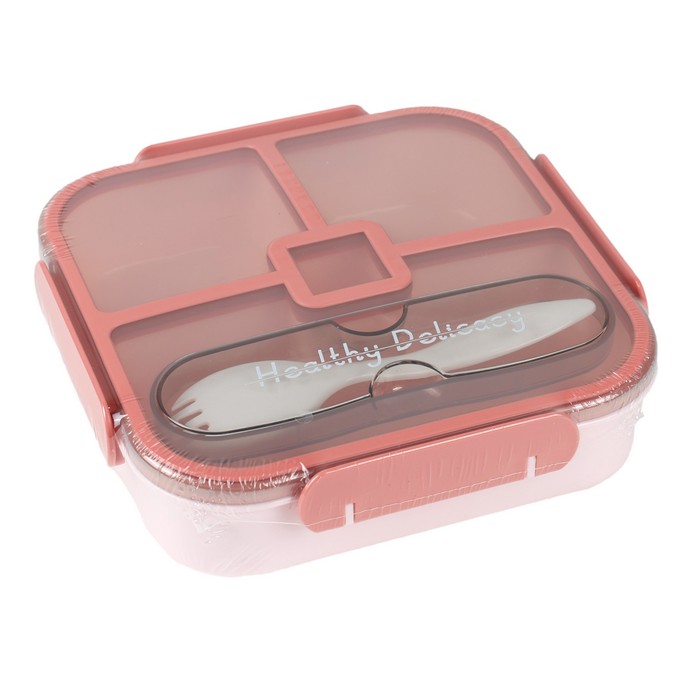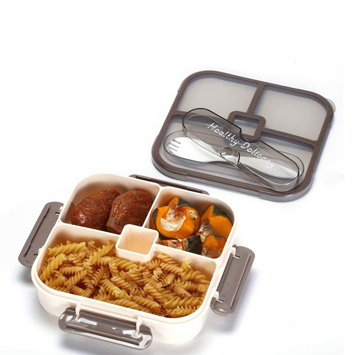 Контейнер для еды, GS, Пластик, 1100 мл, 2 отсеков, Со столовыми приборами, Бежевый