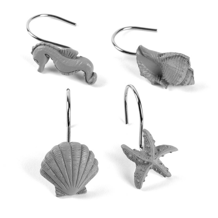 Кольца для душевых штор, SANITARY, Металл, Полирезин, Серый, 12 предметов, Морской конек