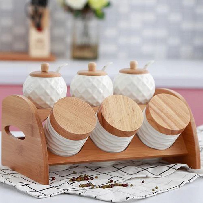Набор контейнеров для хранения, GS, 6 предметов, Керамика/Бамбук, С подставкой