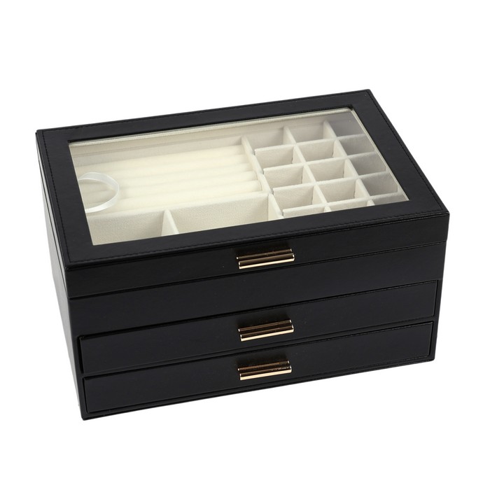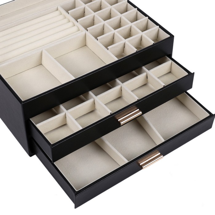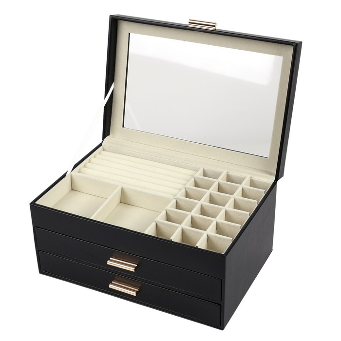 Ювелирный организатор, GS, Эко Кожа, 3 уровня, 26,5x18x13,5см, с зеркалом, Различные Цвета