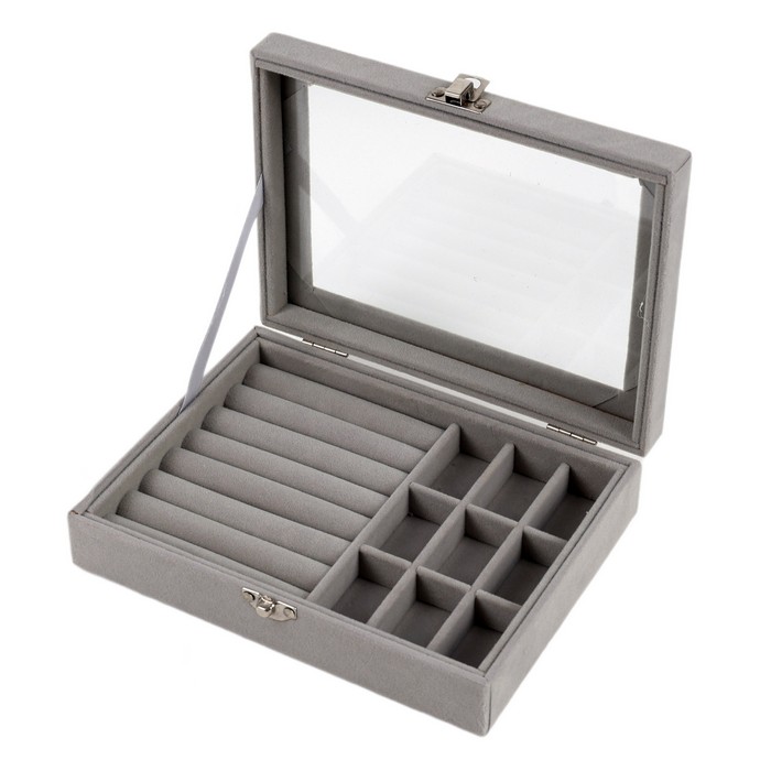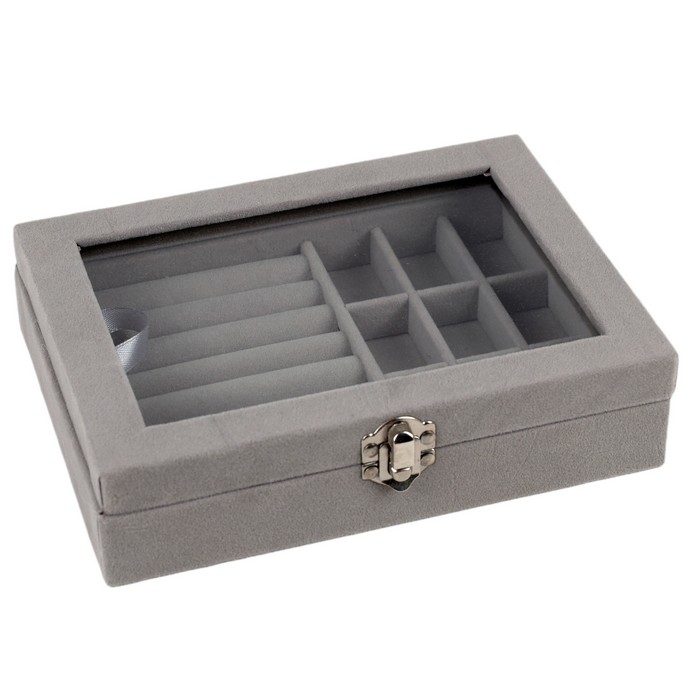 Ювелирный организатор, GS, Бархат, 10 отсеков, 20x15x4,5см, Розовый/Cерый
