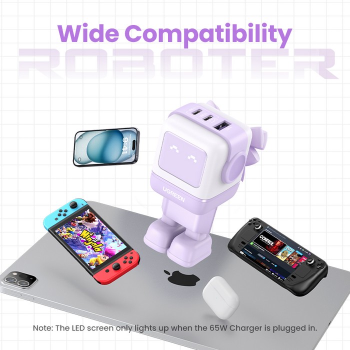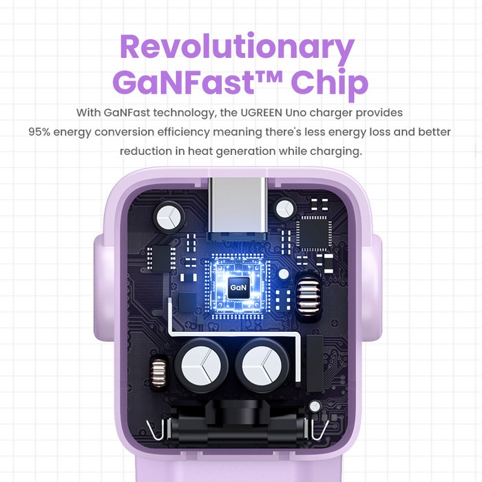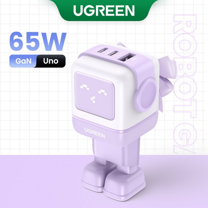 Зарядное устройство, UGREEN, GaN Tech Fast Charger, 65Вт, USB-A, USB-C, Сеть, Фиолетовый