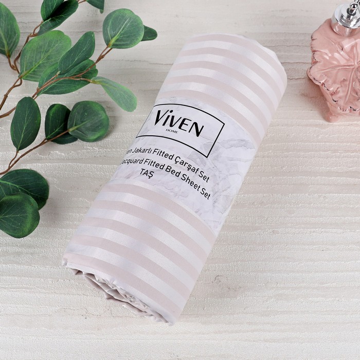 Комплект простыни с резинкой и навушкой, VIVEN, 3 предмета, 180x200+30 см, 50x70cм, Хлопок, Бежевый