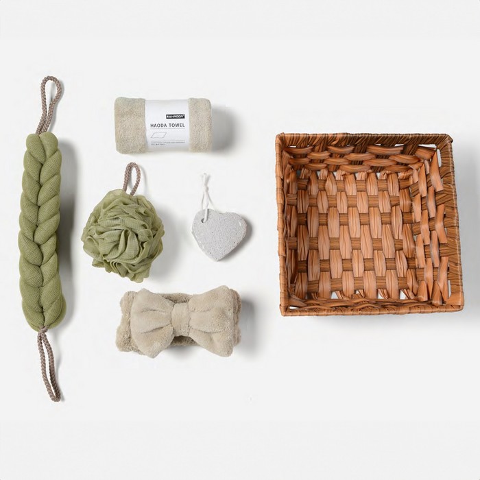 Набор для ухода за телом, HAODA, 5 штук, Бежевый/Коричневый, КОРЗИНА ИЗ РОТАНГА