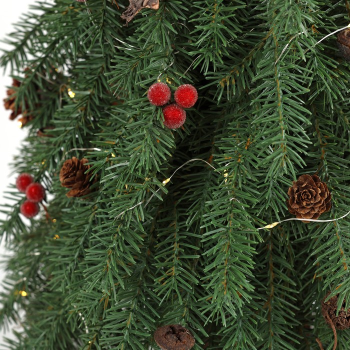 Декоративное рождественское елка, GLOBAL CHRISTMAS, 65см, Светодиодные лампы, Зеленый, ПE, Шишки и Ягоды