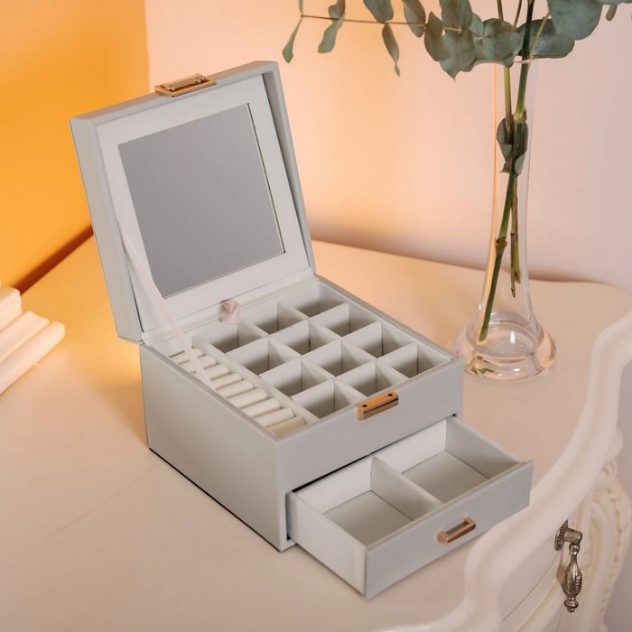 Jewelry organizer, GS, Эко Кожа, 16х16х12см, Серый