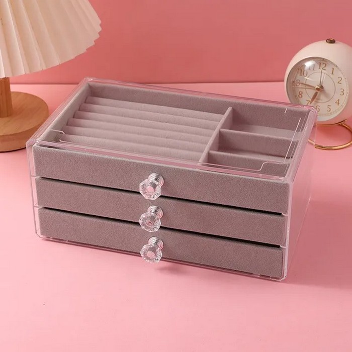 Органайзер для ювелирных изделий, GS, Бархат, 3 уровня, 24x15x10.5 см, Серый