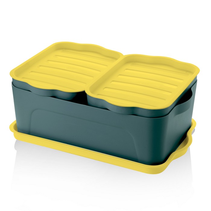Набор ящика для хранения, WISHHOME, Пластик, 3 предмета, 2 Л, 5л, Желтый/Зеленый, С крышкой