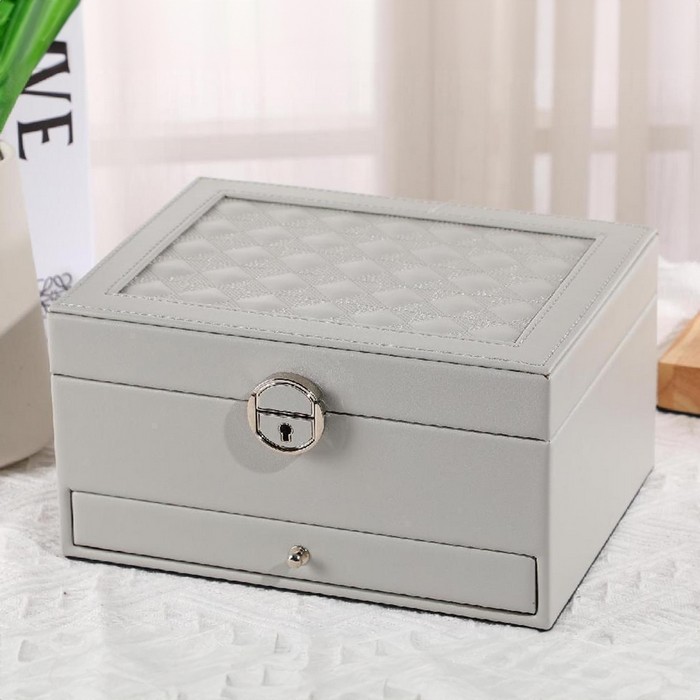Органайзер для ювелирных изделий, GS, Эко Кожа, 2 уровня, 22.4x17.5x11 см, Серый