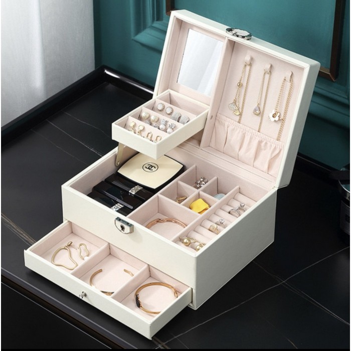 Органайзер для ювелирных изделий, GS, Эко Кожа, 2 уровня, 22.4x17.5x11 см, Белый