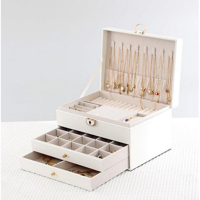 Органайзер для ювелирных изделий, GS, Эко Кожа, 3 уровня, 23x17.5x13 см, Белый