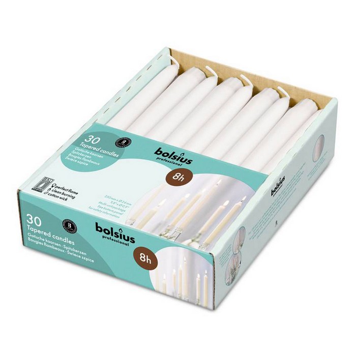Набор свечей, BOLSIUS, 30 штук, 24.5cм, Белый, Парафин