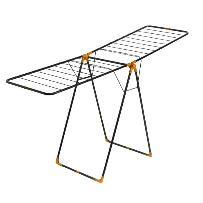 Продукт предлагает дополнительное пространство как по высоте, так и по ширине, устойчив и прочен. Сушилка предназначена для длинной одежды, не касаясь пола. С двумя складными сторонами, которые открываются на максимальную высоту. Можно использовать как в помещении, так и на улице, она безопасена даже при слабом ветре. Рекомендации: * Равномерно распределите белье по всей поверхности. * Хранить во влажных помещениях. * Сушилку можно чистить мягкой тканью и теплым мыльным раствором, избегая использования моющих средств и абразивных губок.