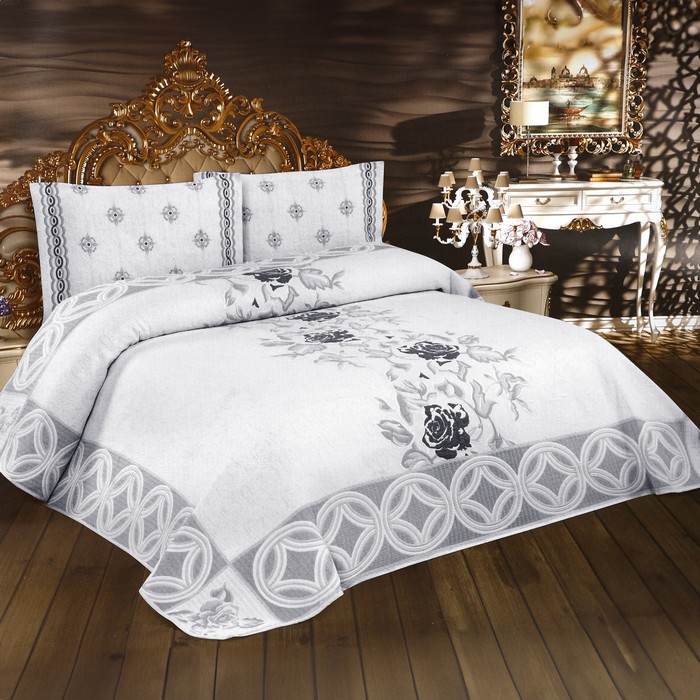 Набор покрывало с наволочками, BIRHOME, 3 предмета, 240x260cм, 50x70cм, Хлопок с добавками, Серый