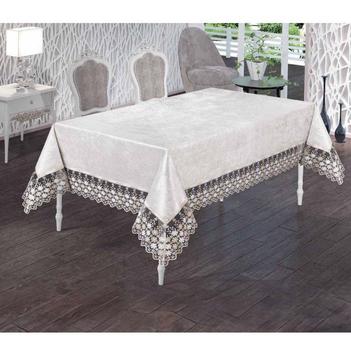 Скатерть, ATAK HOME, 160x300 cм, 12 человек, Ferzane, Кремовый, Полиэстер