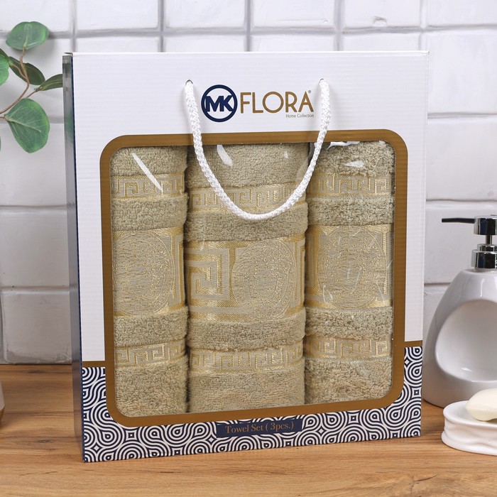Набор полотенец для бани, MK HAVLU, 3 предмета, 50x90 cм, 70x140 cм, Хлопок, Тёмно- Бежевый