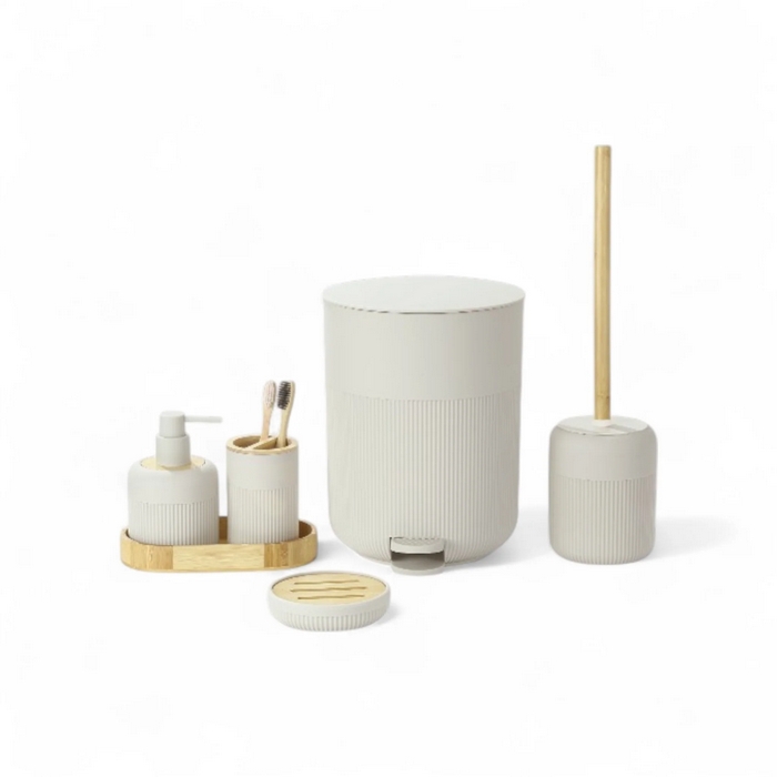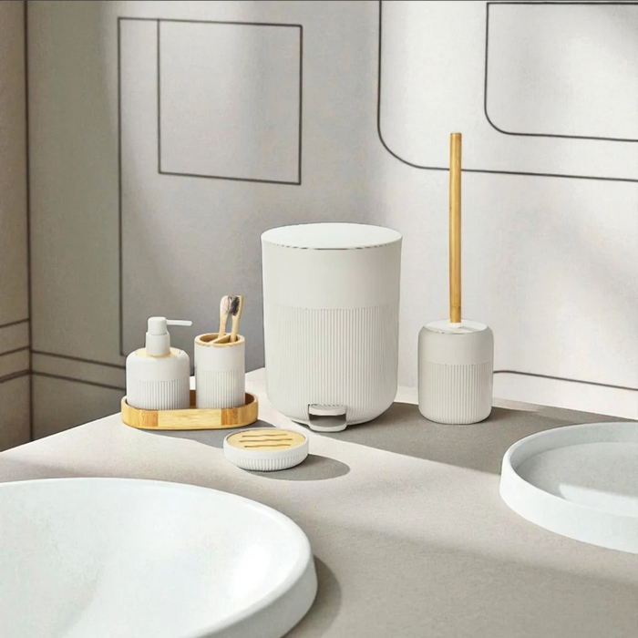 Набор аксессуаров для ванной, GS, 5 штук, Пластик/Бамбук, Белый
