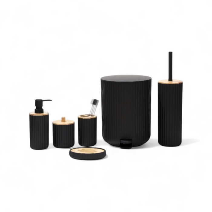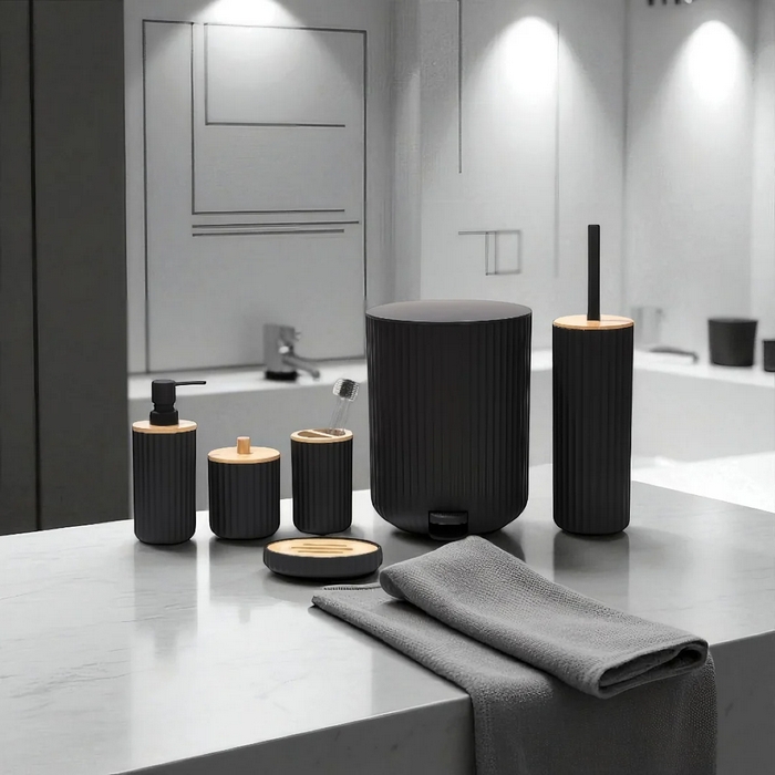 Набор аксессуаров для ванной, GS, 5 штук, Пластик/Бамбук, Черный