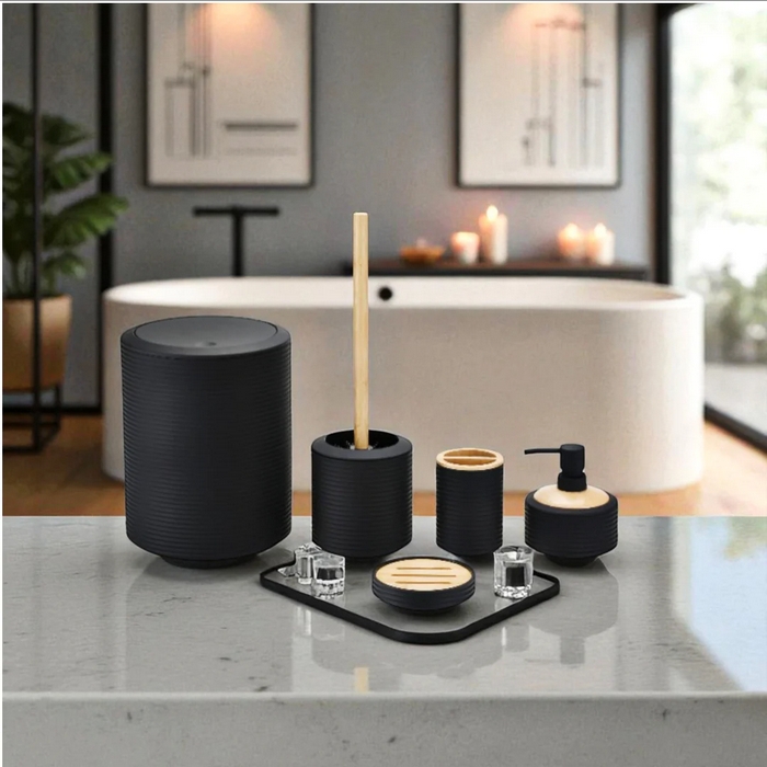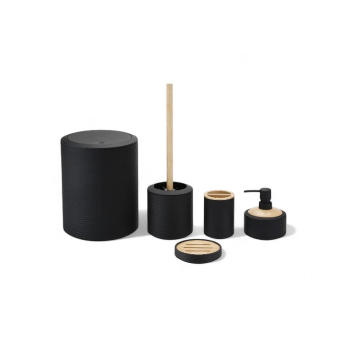 Набор аксессуаров для ванной, GS, 5 штук, Пластик/Бамбук, Черный