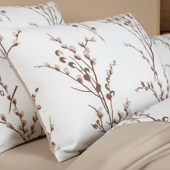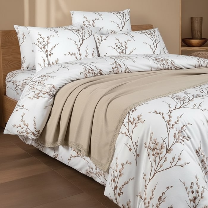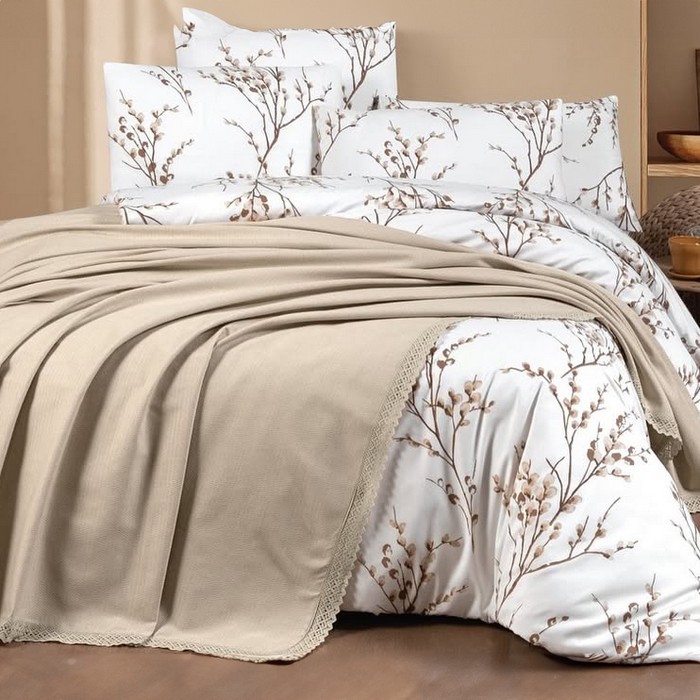 Постельное белье, VIVEN, 4 штук, 220x240cм, 220x240cм, 50x70cм, Хлопок, Белый/Бежевый, Double Size, Турция