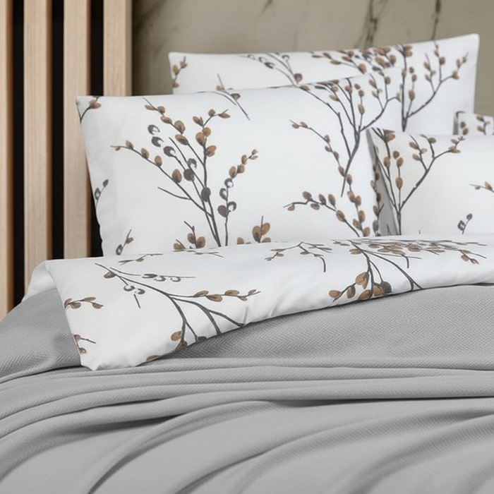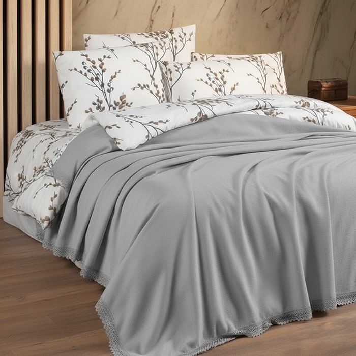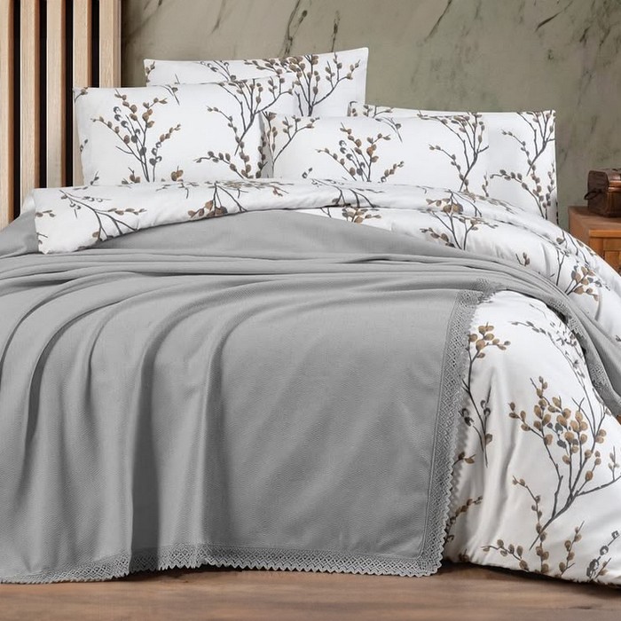 Постельное белье, VIVEN, 4 штук, 220x240cм, 220x240cм, 50x70cм, Хлопок, Белый/Серый, Double Size, Турция