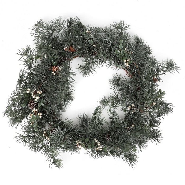 Декоративная рождественская ветка, GLOBAL CHRISTMAS, 50см, Зеленый, ПE, Шишки и Ягоды