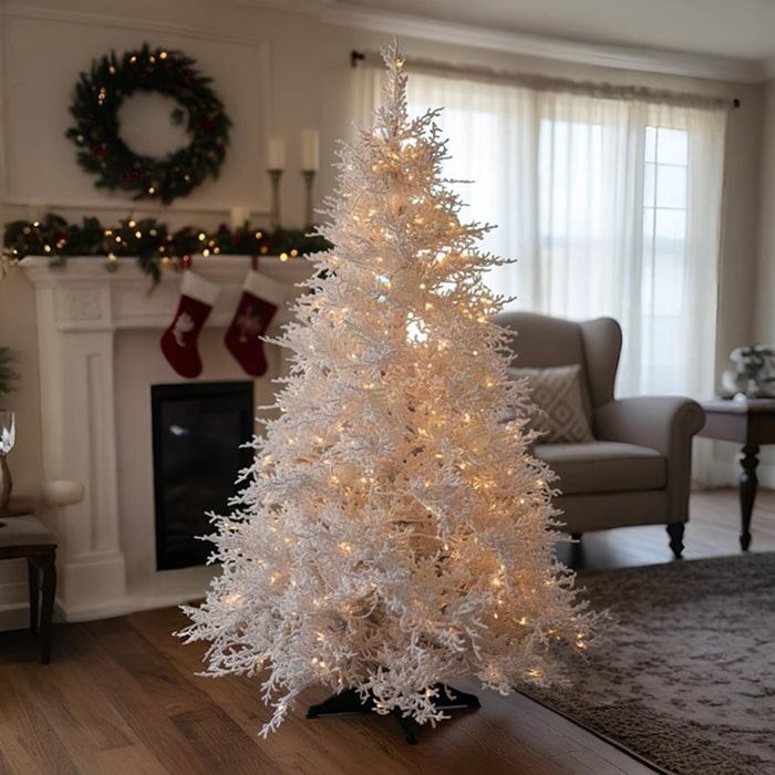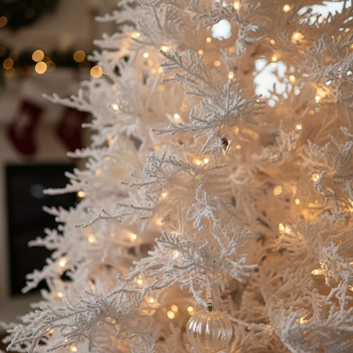 Новогодняя елка, GLOBAL CHRISTMAS, Белый, 210 см, ПE, Светодиодные лампы, Заснеженная