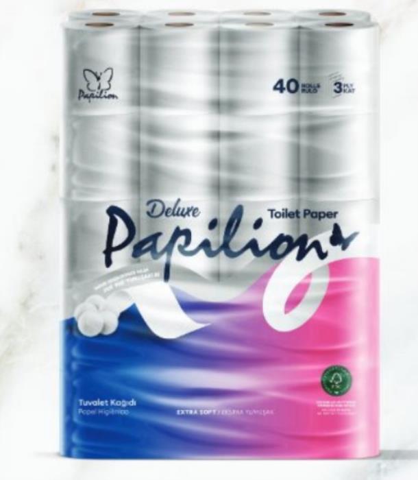 Туалетная бумага, PAPILION, 40 рулонов, 3 слоя, 115 file, Deluxe, 117x93 мм, 13 м