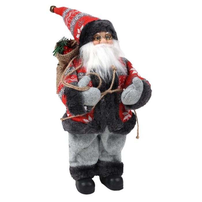 Дед мороз, GLOBAL CHRISTMAS, 30cm, Красный, Текстиль/ Пластик