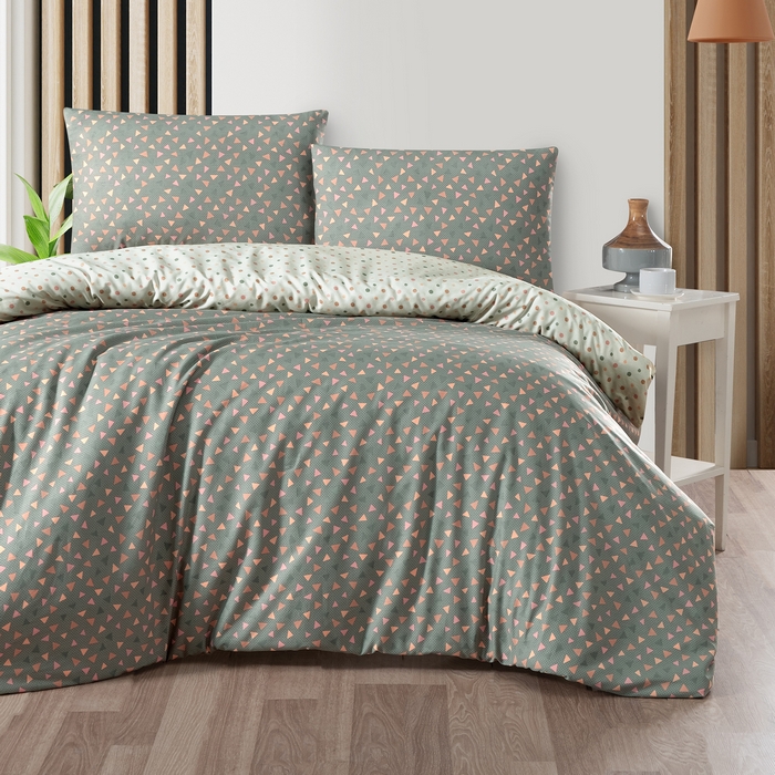 Комплект постельного белья, HOMESKO, 4 штук, 240x260cм, 200x220cм, 50x70cм, Pанфорс, Зеленый, Геометрический, Турция