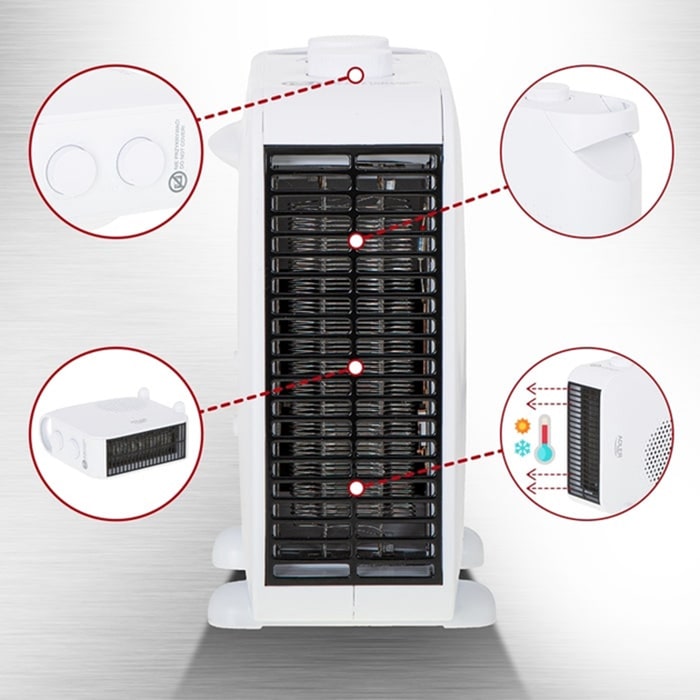Он идеально подходит для быстрого обогрева или охлаждения помещений в зависимости от сезона. Мощность 2000 Вт и два режима обогрева позволяют регулировать температуру с помощью точного термостата, обеспечивая индивидуальный комфорт в любое время суток.