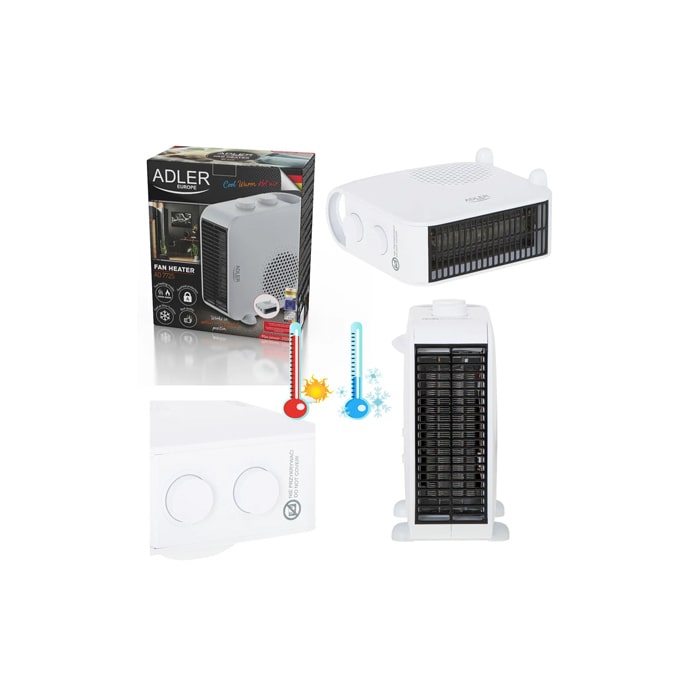 Обогреватель, ADLER, 230x265x125 мм, 2, 1000/2000Вт, 220 - 240 В, Пластик, Белый, 20 м2, На полу, на столе, Да, Отопление, вентиляция, Вертикальное/го