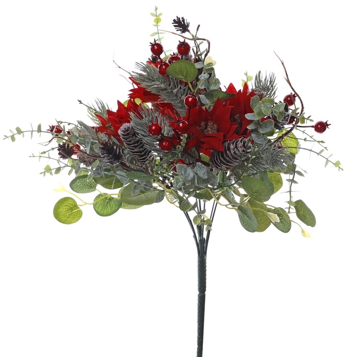 Новогодняя ветка, GLOBAL CHRISTMAS, Елка/ягоды/шишки в инее, 40 см, Зеленый/Красный