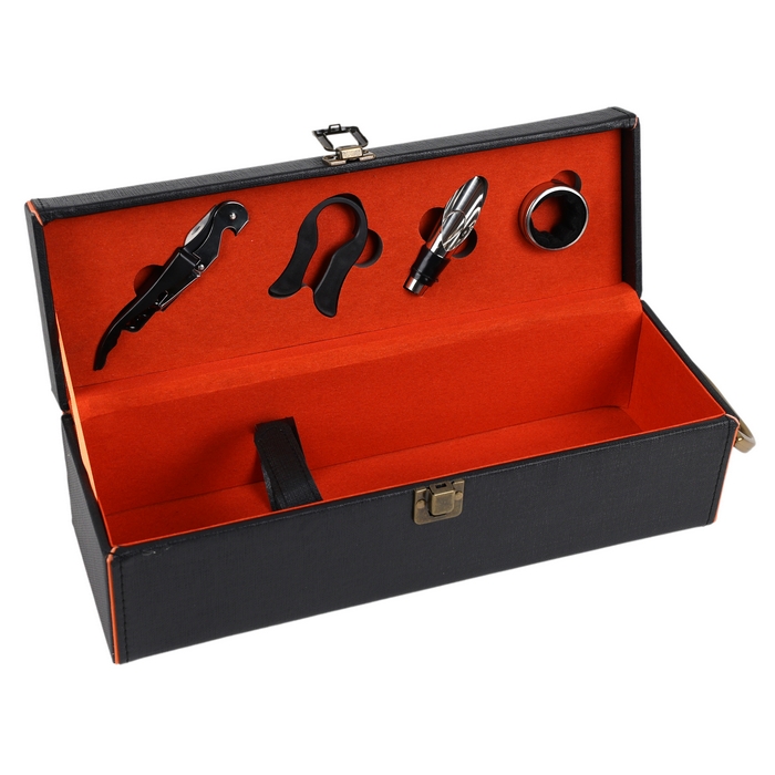 Коробка для бутылок, GS, Искусственная кожа, Винные аксессуары, Черный / красный, 34.5 cm, 10см, 11.5 cm