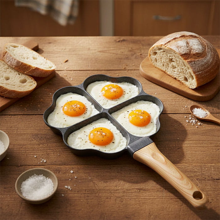 Приготовьте идеальный завтрак быстро и легко с этой сковородой, оснащенной 4 отделениями в форме сердца. Изготовленная из высококачественного алюминия, сковорода быстро нагревается и равномерно распределяет тепло, сокращая время приготовления.