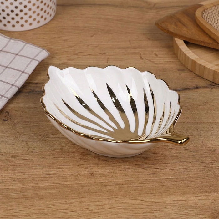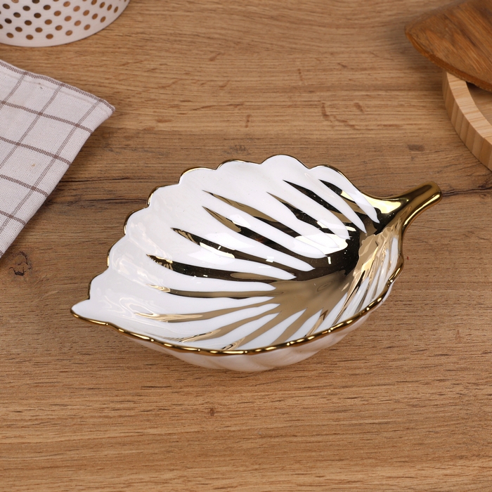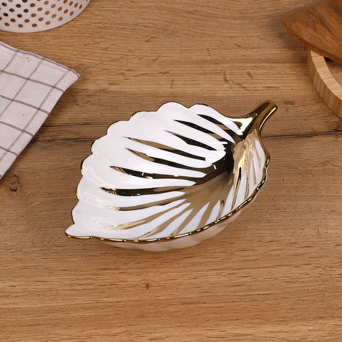Плато, GS, Фарфор, Белый/Золотистый, 19.5см, 12см, 5 см, Лист, Плато